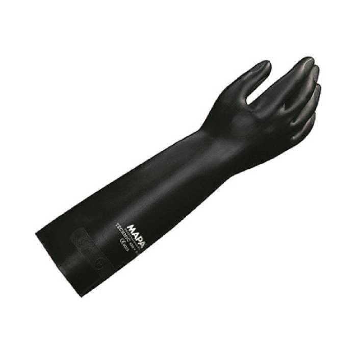 Freedom of movement, due to the supple quality of the neoprene and the comfort of the cotton flock-lining. Good grip, due to embossed texture. Forearm protection: long-sleeved glove.
